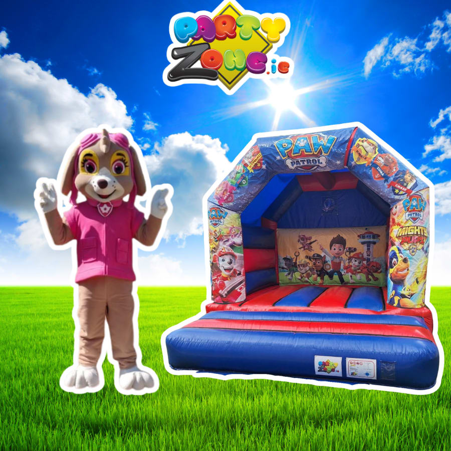 Skye mascot hire Dublin | Skye Paw Patrol mascot hire | Paw Patrol bouncy castle hire Dublin | Paw Patrol 12x12 bouncy castle | Skye and Paw Patrol package | Paw Patrol themed party Dublin | kids party package Dublin | bouncy castle and mascot bundle | mascot costume hire Dublin | partyzone.ie party hire