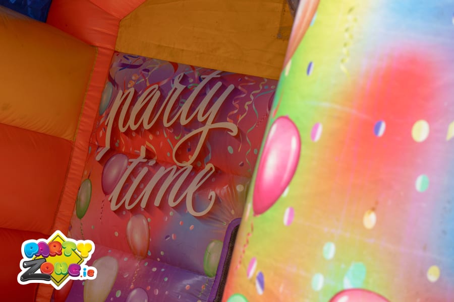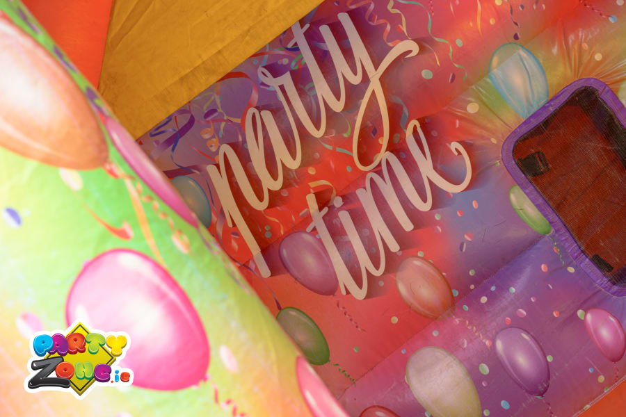It features our most popular 'partytime’ unisex design theme so can be used for almost any occasion, party or event. With bright colours and a springy bouncing bed this castle is sure to make any young childs birthday or day one to remember.