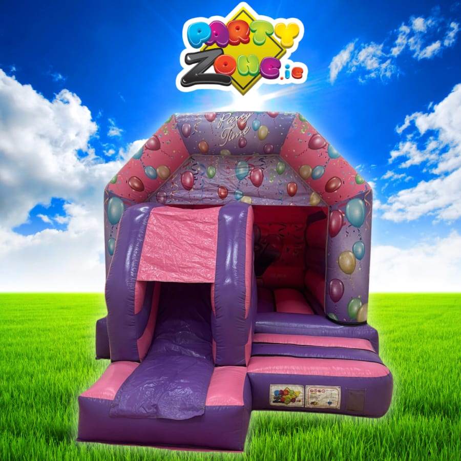 Here is our fantastic Pink/Purple party theme bounce and slide