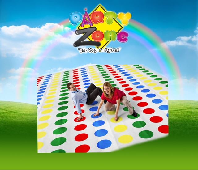 Measuring 12ft(L) X 12ft(W), or 6x6ft our giant Twister game is a great addition to any party with this game that ties you in knots! Same as the traditional Twister game, except much larger, the game challenges the players to place their hands and feet in different locations without falling over. Add a twist to your party and add the game on to your order for guaranteed hours of fun.