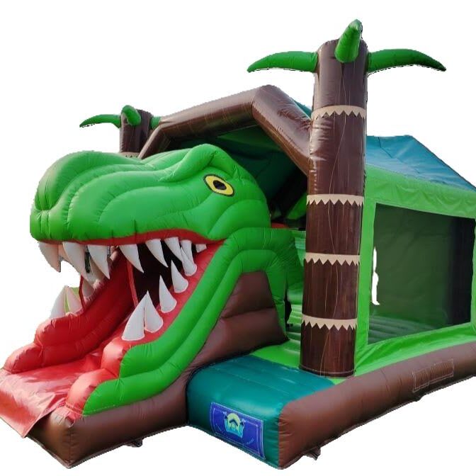 • 3D dinosaur-themed bouncy castle with integrated slide