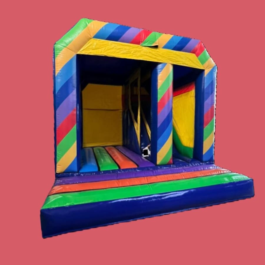 Multicoloured Bouncy Castle with Slide Hire – Bright, Fun & Always Popular