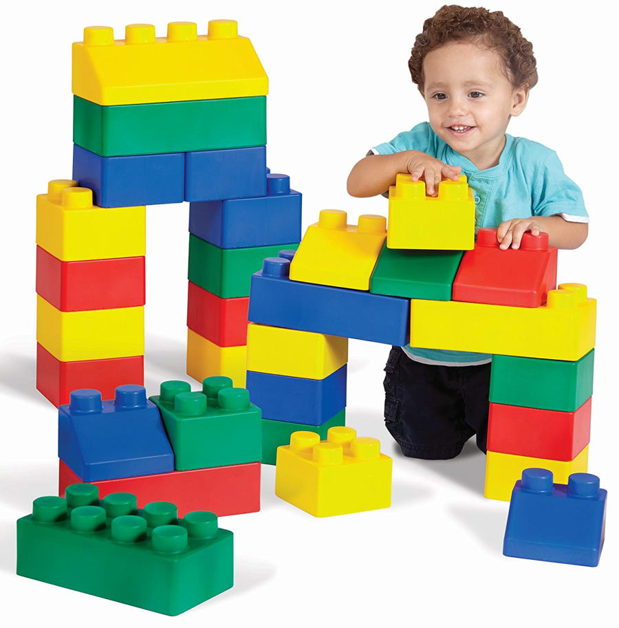 Build to your hearts content with Lego These large, interlocking building blocks snap together to create structures big enough for toddlers to play in and walk through. Each building block is flexible and safe for even new-borns to play with!
