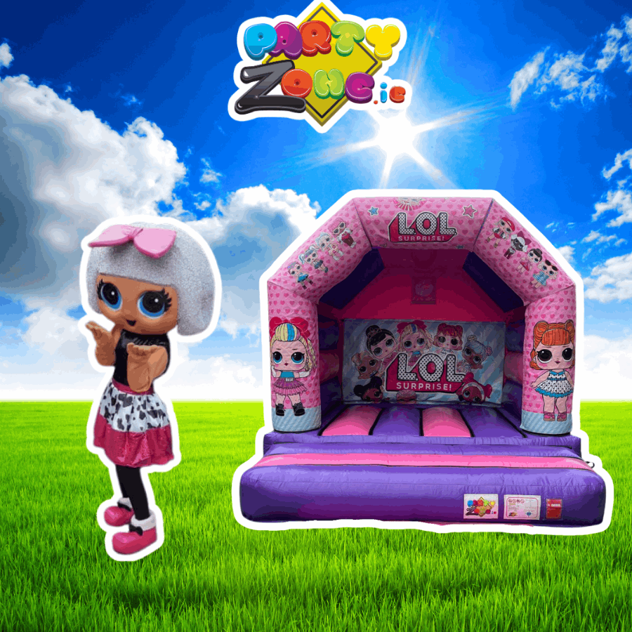 LOL Diva mascot hire Dublin | LOL Surprise bouncy castle hire Dublin | LOL 12x12 bouncy castle | LOL party package Dublin | kids glam party Dublin | kids party hire Dublin | bouncy castle and mascot bundle | mascot costume hire Dublin | character party hire Dublin | partyzone.ie