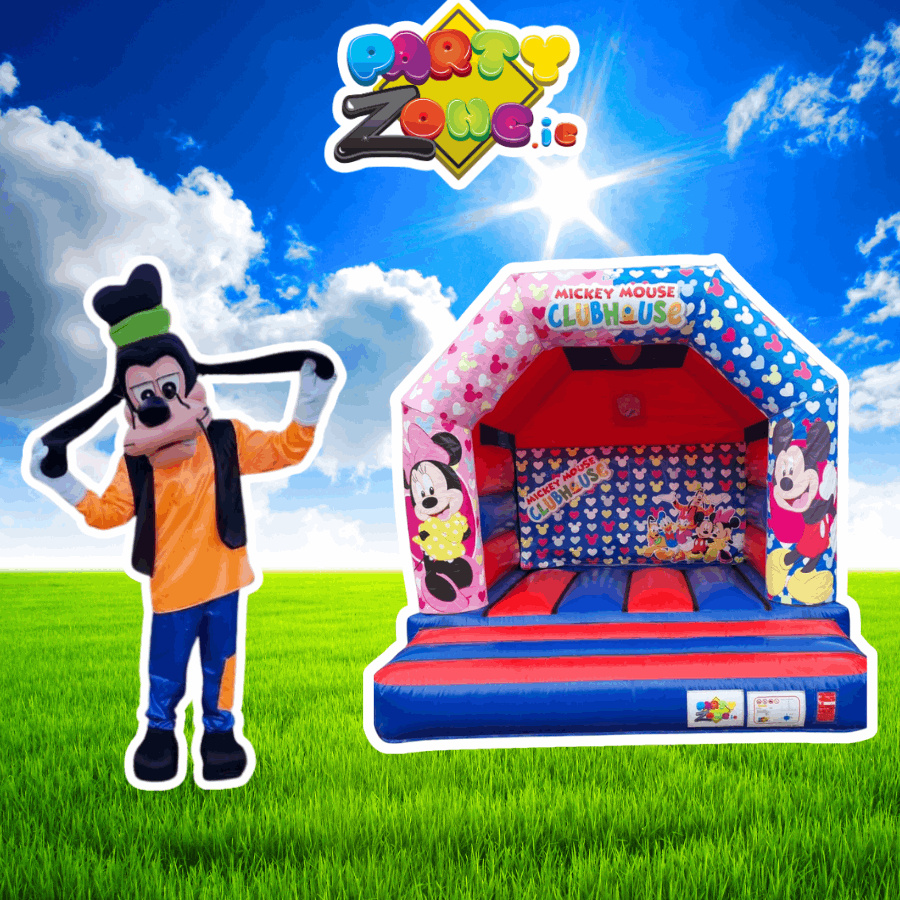 Bring classic cartoon fun to your party with our Goofy package, combining a 12x12 Mickey Mouse Clubhouse bouncy castle with a Goofy mascot costume for a full themed setup that kids instantly recognise. It’s ideal for birthdays, family celebrations, schools and community fun days—especially if you want a big “wow” moment on arrival and loads of photo opportunities with the birthday child.