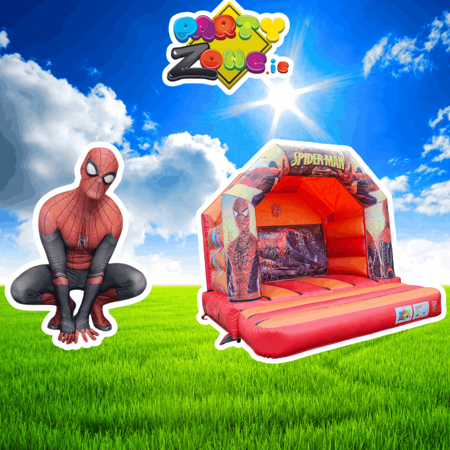 Spiderman mascot hire Dublin | Spider-Man character hire Dublin | Spiderman bouncy castle hire Dublin | Spiderman 12x12 bouncy castle | superhero party hire Dublin | kids superhero party Dublin | bouncy castle and mascot bundle | superhero themed party Dublin | mascot costume hire Dublin | partyzone.ie bouncy castle hire